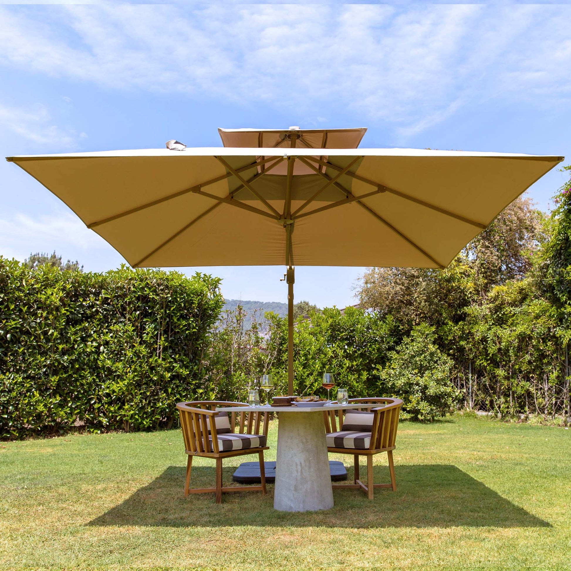 Convierte tu espacio exterior en un ambiente de lujo. Esta sombrilla ofrece mayor estabilidad con estructura de aluminio resistente, acabado refinado y tela premium. Ideal para terrazas, jardines y exteriores de uso frecuente.
