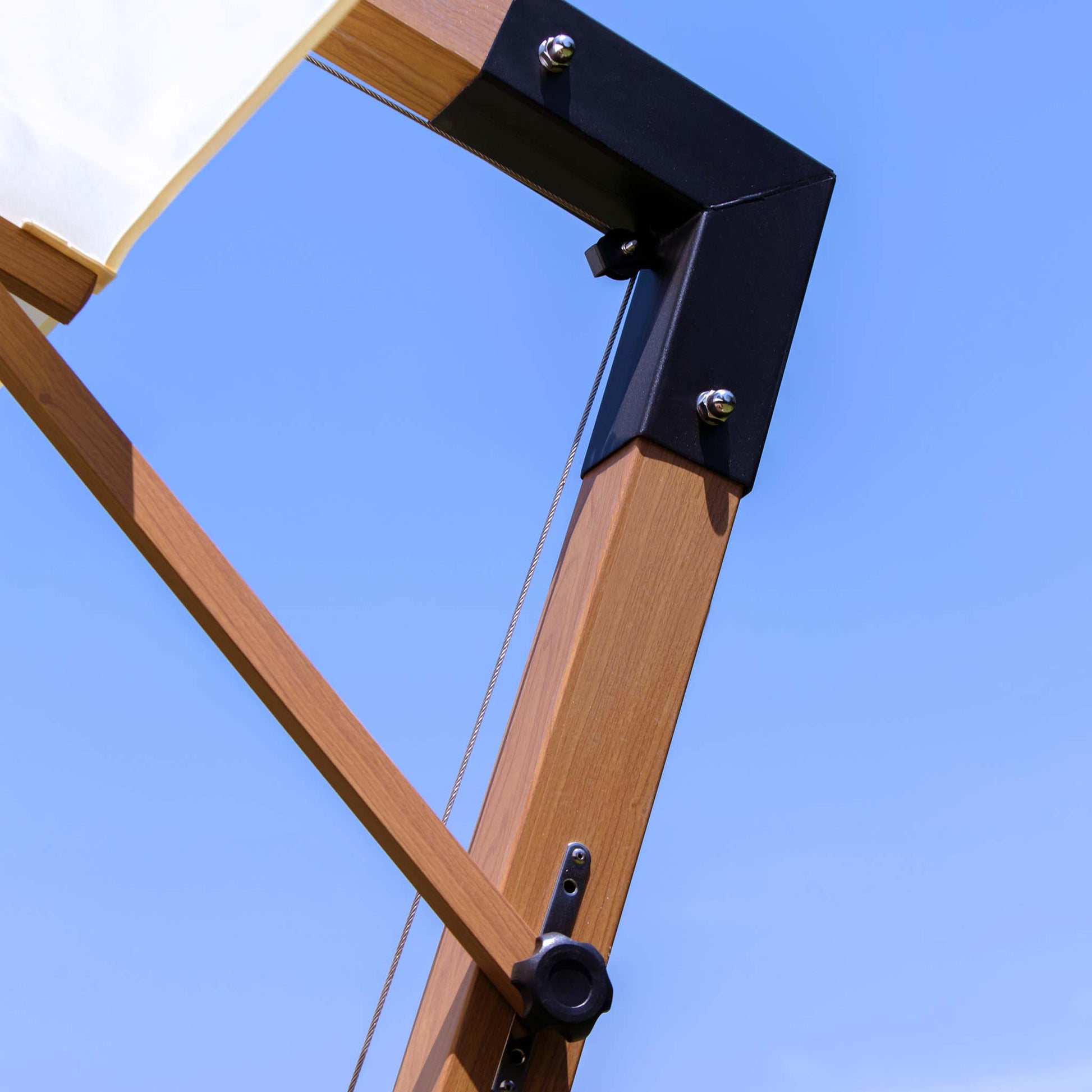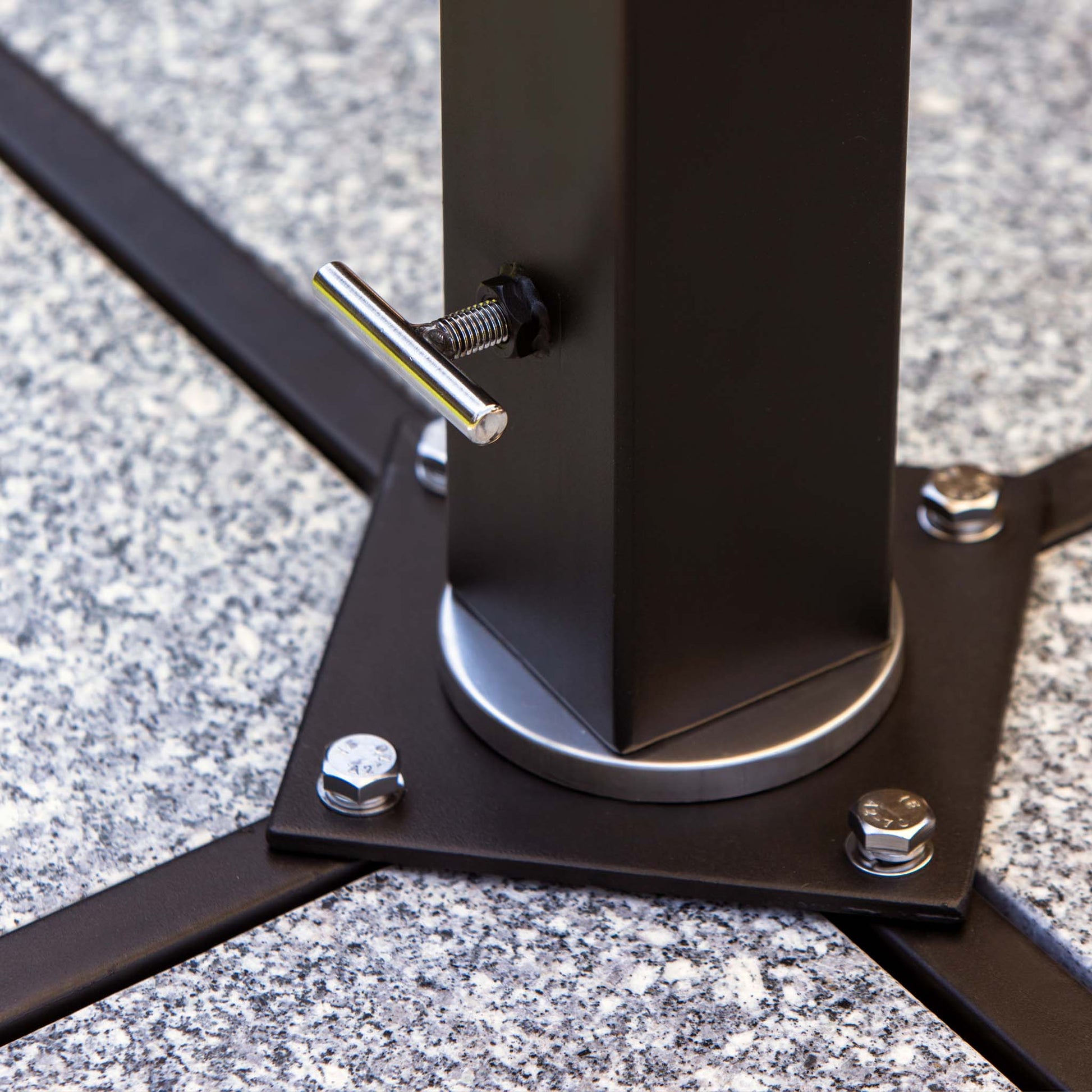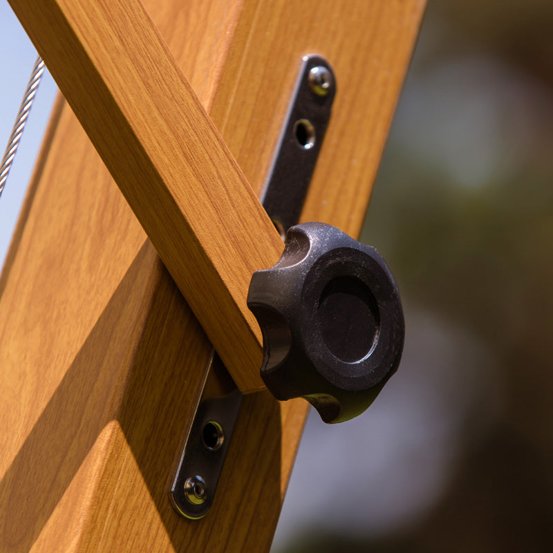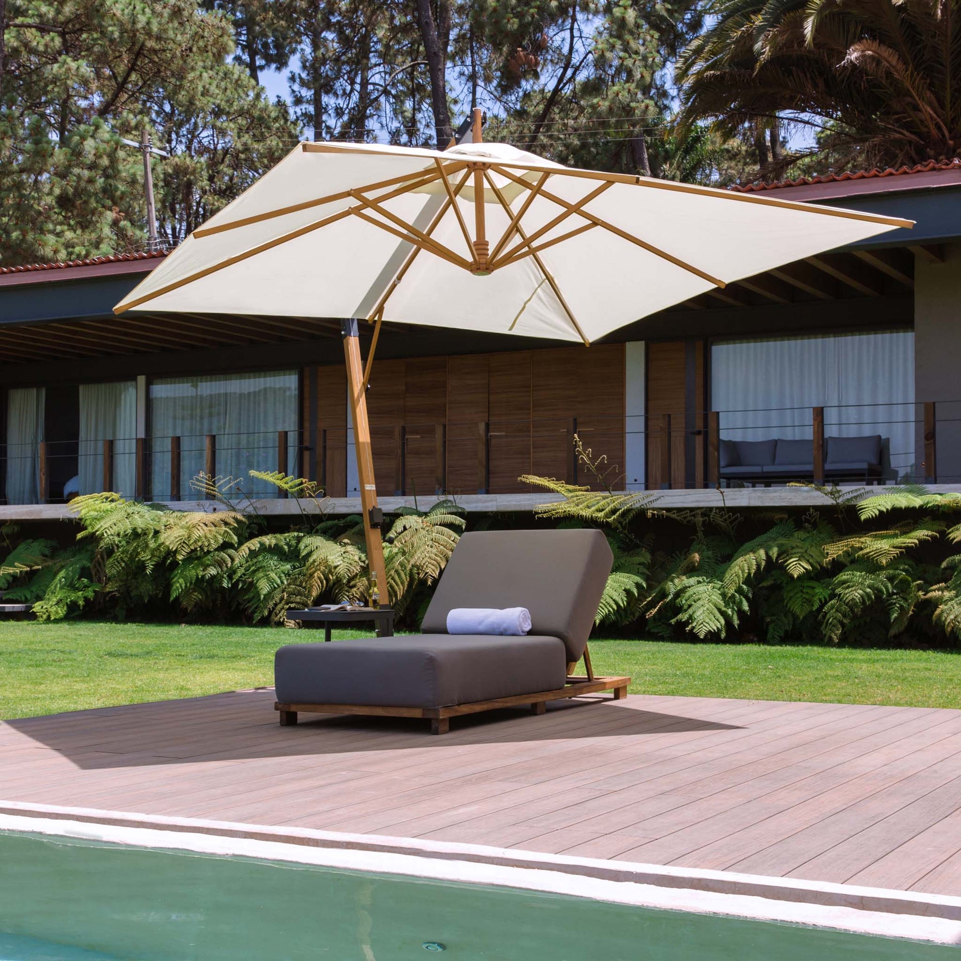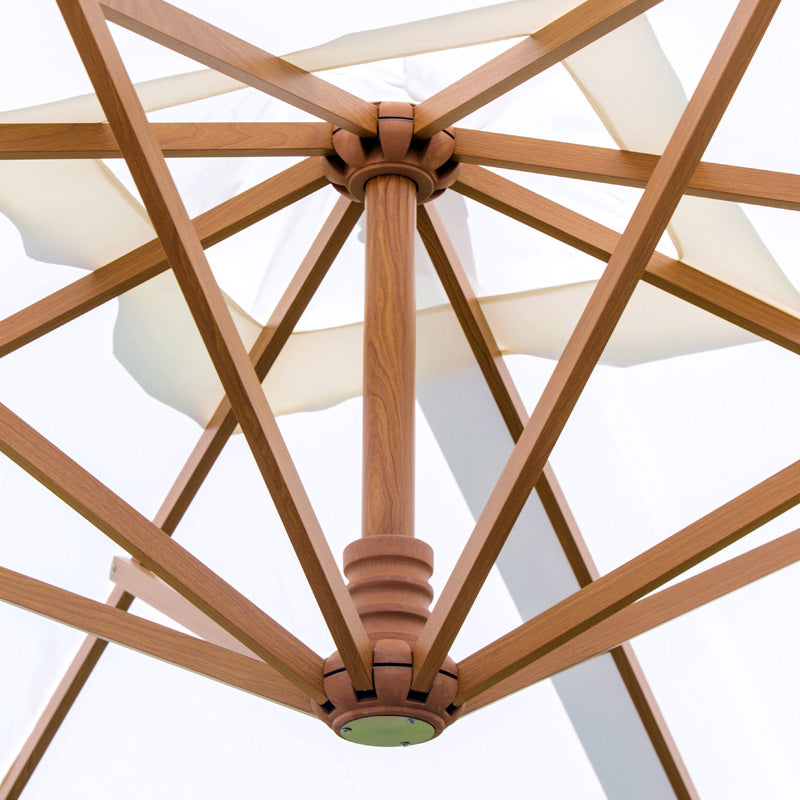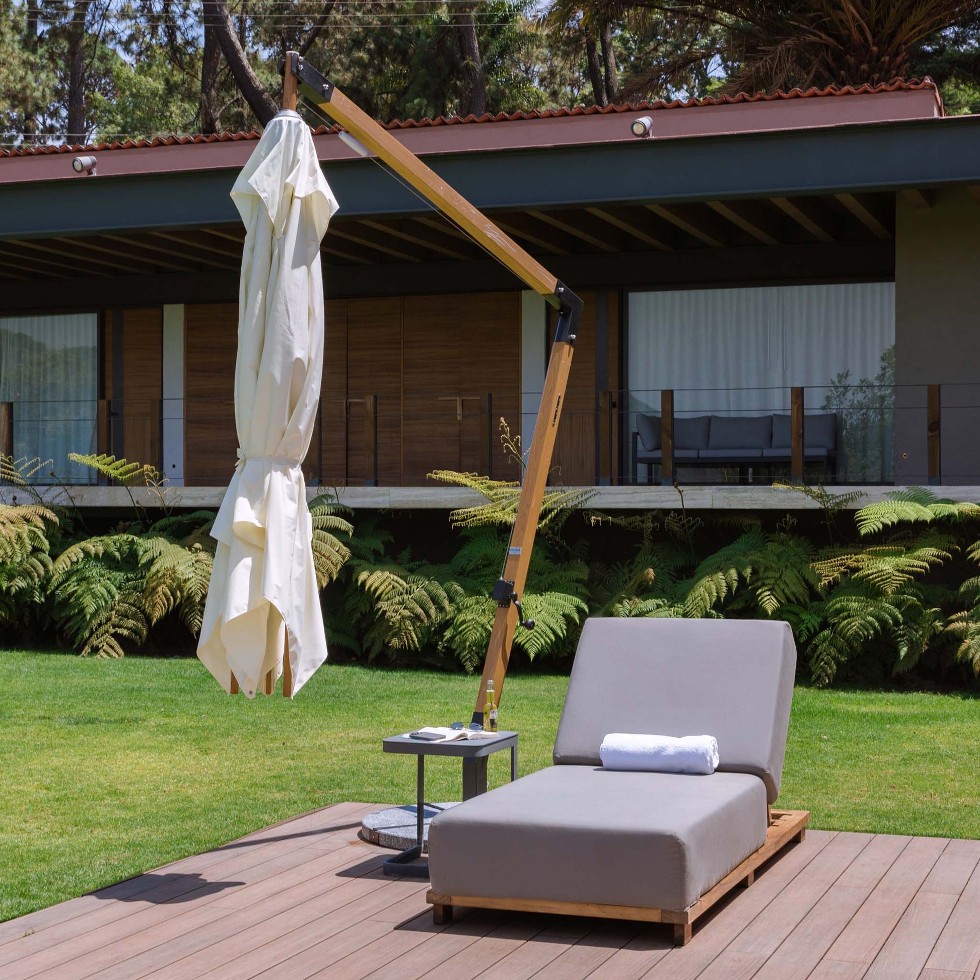 Distinción y rendimiento para espacios exteriores exigentes. Equipada con estructura de aluminio con acabado tipo madera, tela premium y base sólida incluida. Ideal para terrazas residenciales o comercios.